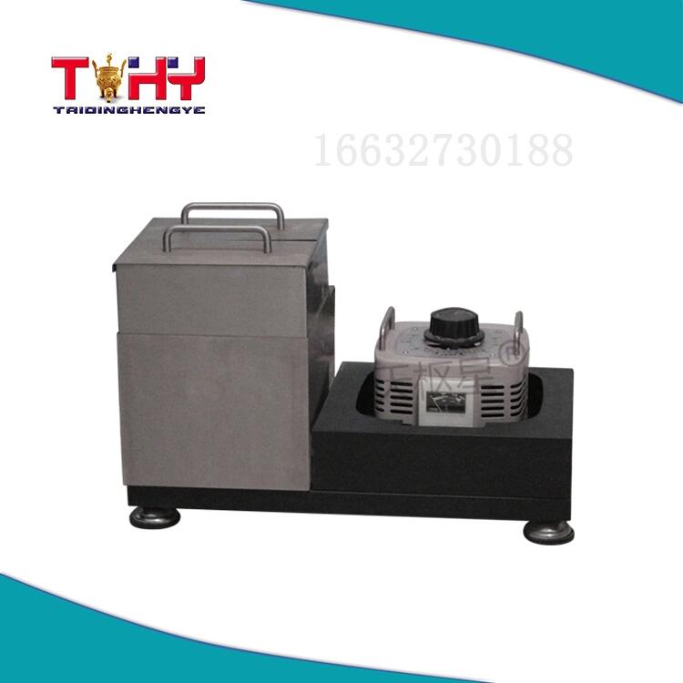 4)調(diào)整電壓,使操作實際中,從調(diào)整至試驗溫度時刻開始到溫度指示劑全部融化的時問,同條2)計算的時間相同(容許25的誤差)請了解:預熱時間的長短、加熱溫度的高低、是否加叫面遮風板,是否加蓋板及蓋板之間的距離大小,均會成為加熱時間的影響因素;所以,為了前后試驗條件的一致,蓋板的距離也應該前后一致(可做記號輔助判定)。
