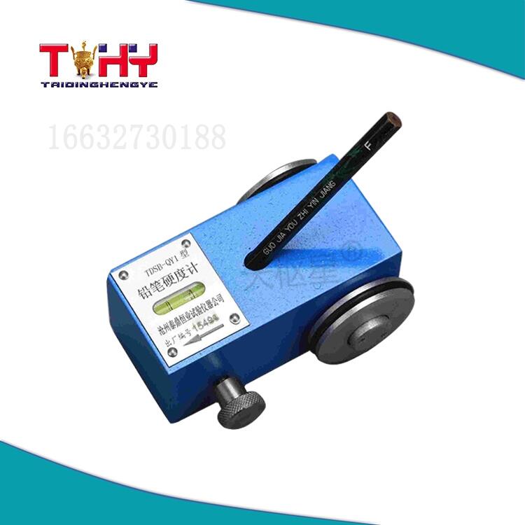 試驗儀是由一個兩邊各裝有一個輪子的金屬塊組成的。在金屬塊的中間.有一個圓柱形的、以(15±1)℃傾斜的孔。借助夾子,鉛筆能固定在儀器上并始終保持在相同的位置。在儀器的頂部裝有一個水平儀,用于確保試驗進行時儀器的水平。試驗時儀器處于水平位置,鉛筆尖端施加在漆膜表面上的負(fù)荷應(yīng)為(750±10)g。