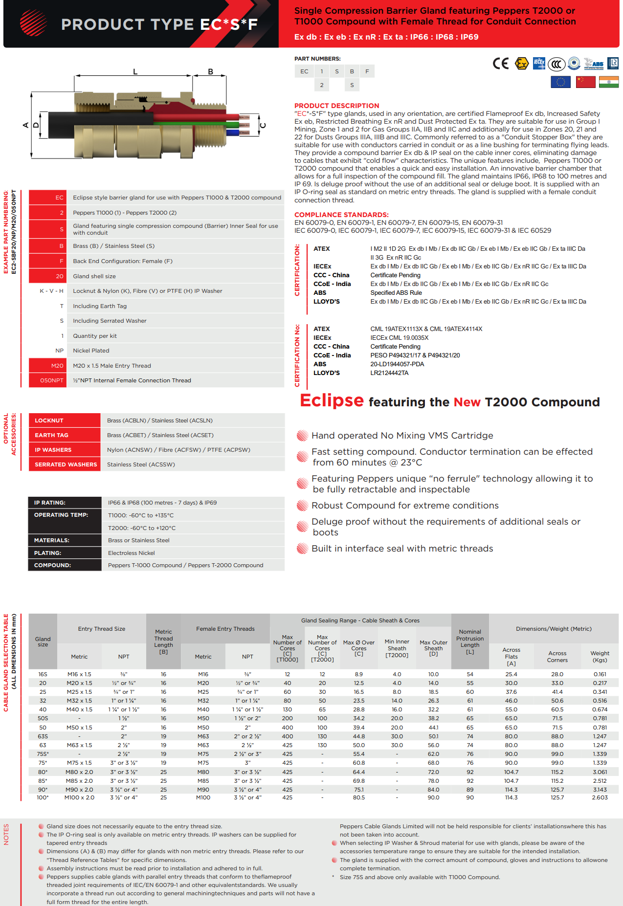英國Peppers填料型防爆格蘭Peppers cable Gland Type EC*S*F(Single compression for conduit connection with T1000 or T2000 compound)