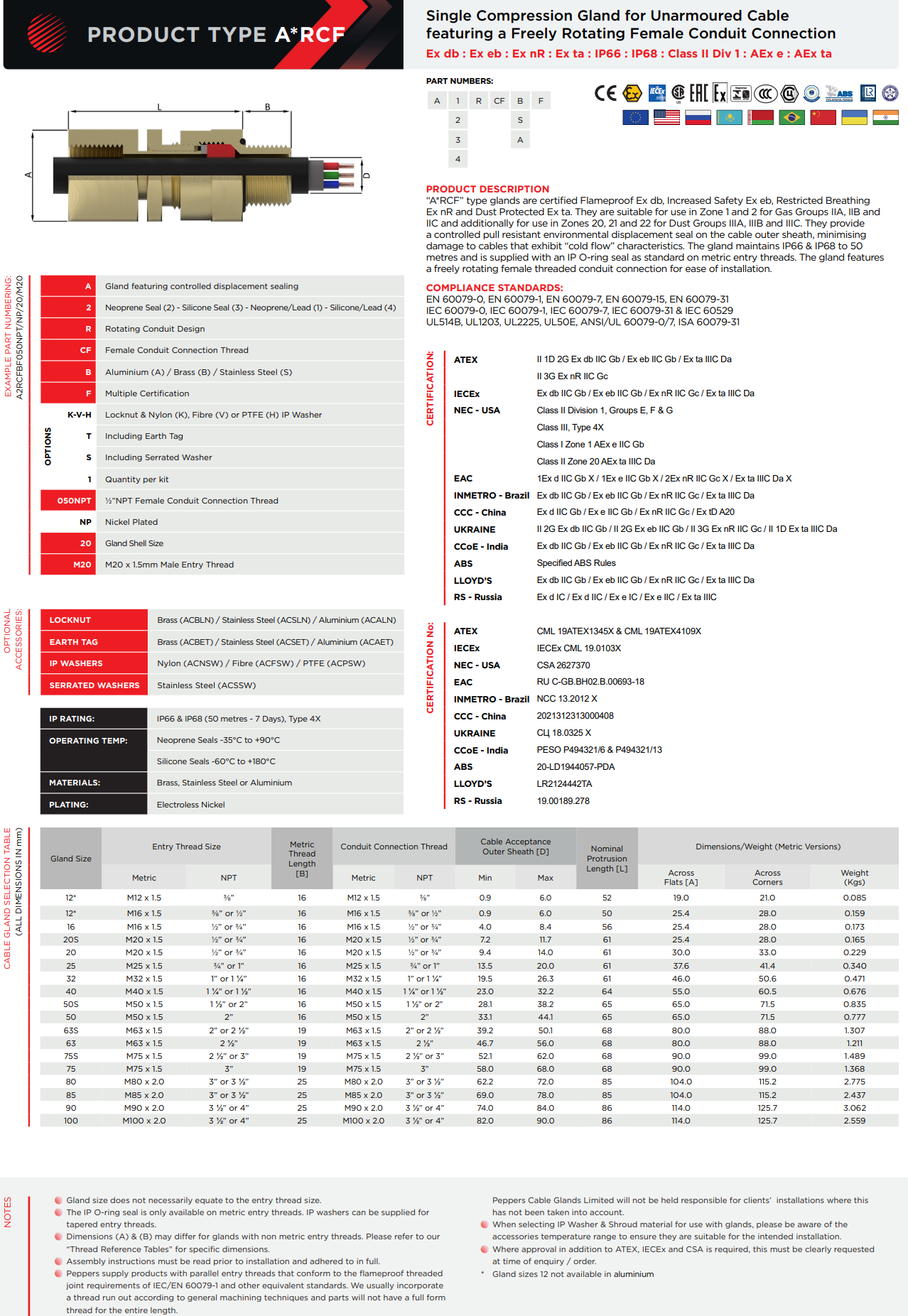 英國Peppers接管式防爆格蘭Peppers cable Gland Type A*RCF(Single compression conduit gland)