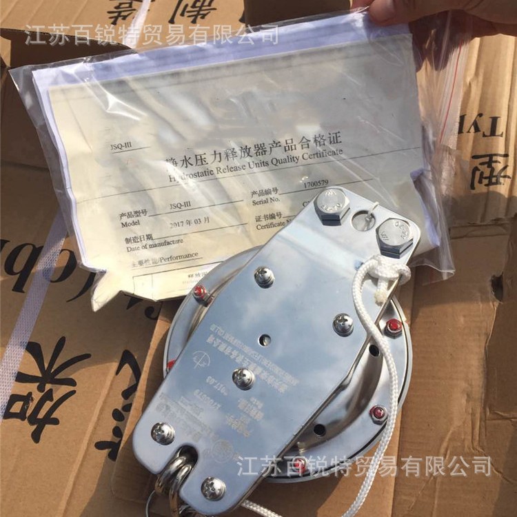 釋放器,靜水壓力釋放器((Hydrostatic Release Unit)是氣脹式救生筏的較為理想和必備的快速釋放裝置,具有在水深2-4米中自動(dòng)脫鉤和手動(dòng)脫鉤的功能,可在任何角度下將救生筏釋放。它選用耐腐蝕強(qiáng)的不銹鋼材料或工程塑料制成。提供CCS證書(shū)