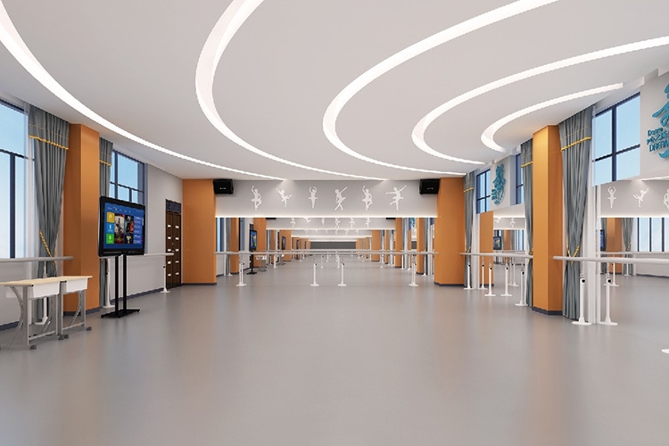 舞蹈教室地面的選擇可以選擇木板,防滑性能一定要好,地膠的選擇也很重要,要軟一些,太硬不利于舞蹈人員的練習。所以地面選擇一定要以舞者的安全為出發(fā)點。