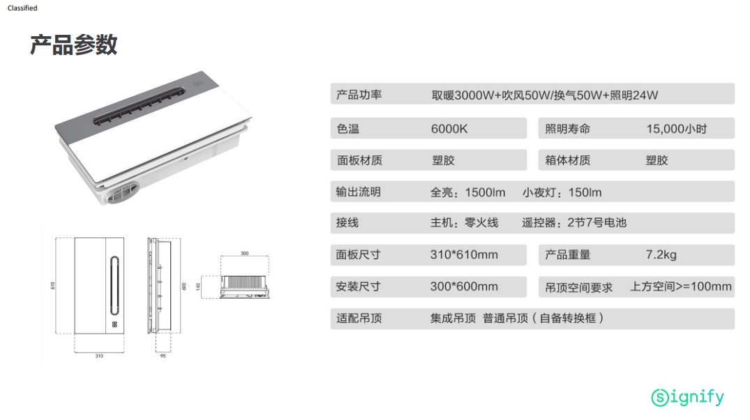 飛利浦 3000W橫式無邊界照明智能浴霸