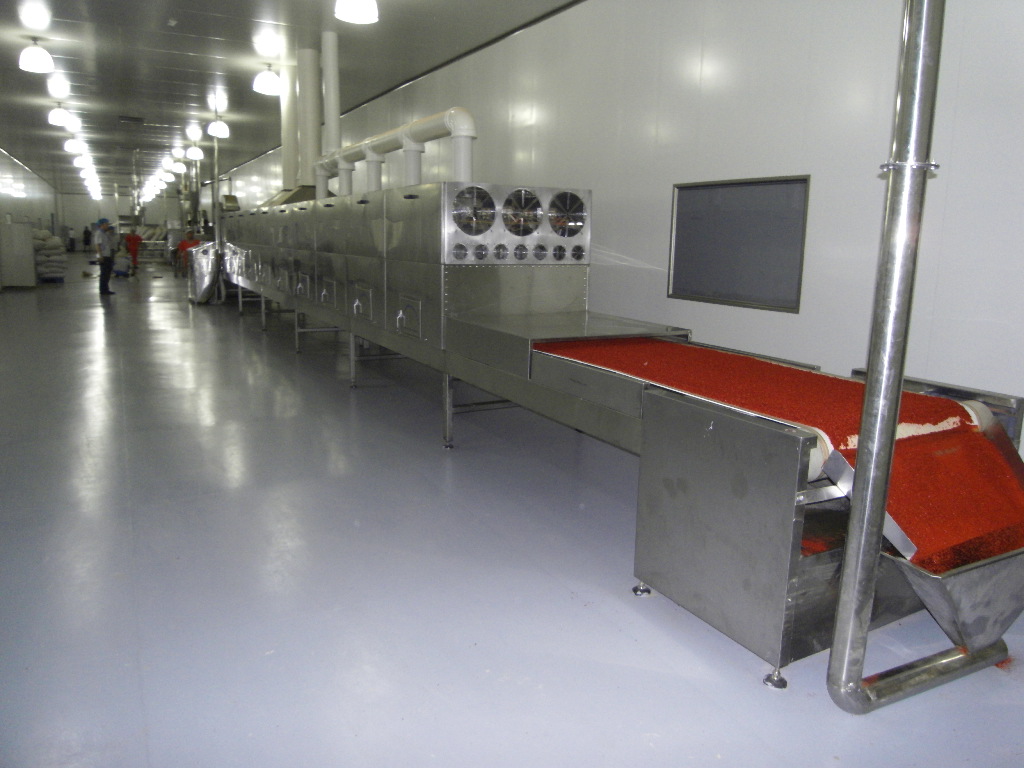 辣椒粉微波干燥殺菌機殺菌后,辣椒中大腸桿菌可控制在每30個/100克以內(nèi)。用微波處理的辣椒中的細菌指數(shù)可完全達到食品衛(wèi)生標準。并且能保證原有色,香,味;破壞營養(yǎng)成分很少,產(chǎn)品口感好。