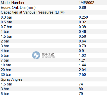 BEX噴嘴1/4F8002 KN技術參數(shù)及選型