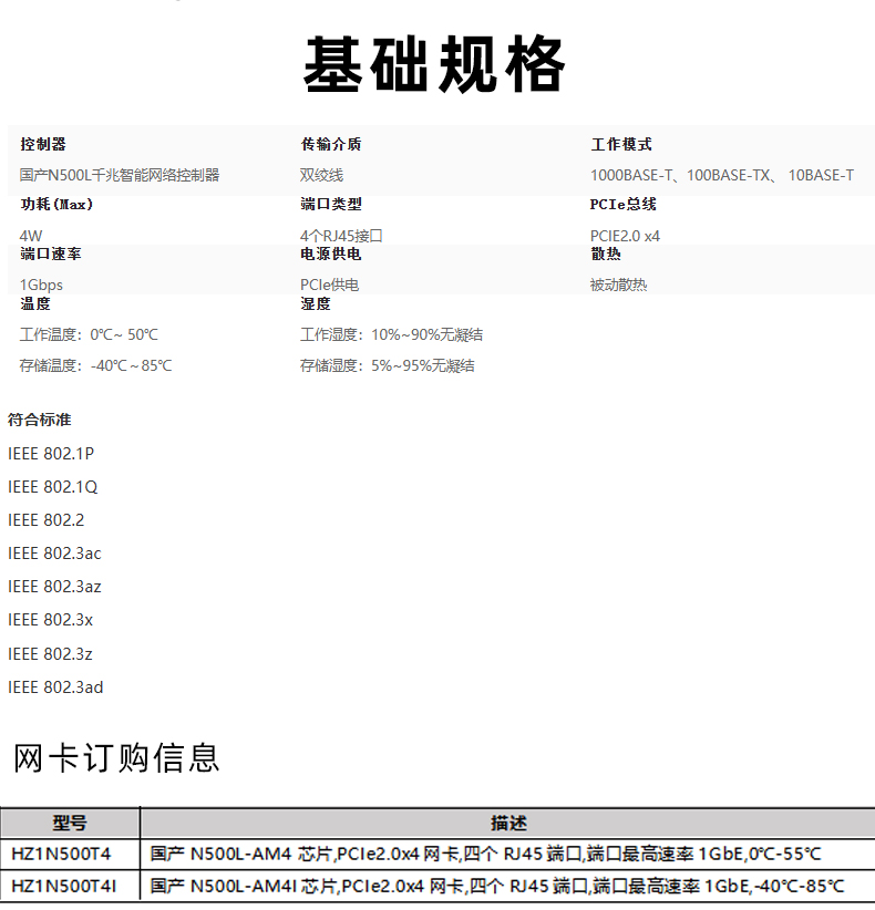 HZ1N500T4I 1Gbps以太網(wǎng)智能網(wǎng)卡