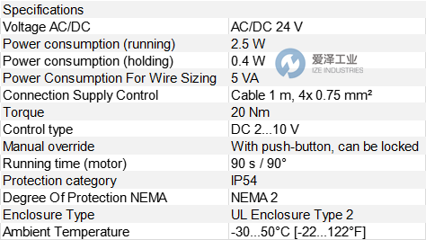 旋轉(zhuǎn)執(zhí)行器,20牛米,交流/直流24伏,2...10伏,90秒,IP54