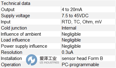 SENSE溫度變送器TMT190系列技術(shù)參數(shù)