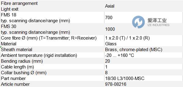SENSOPART光纖傳感器978-08216 18/30 L3/1000-MSC技術(shù)參數(shù)