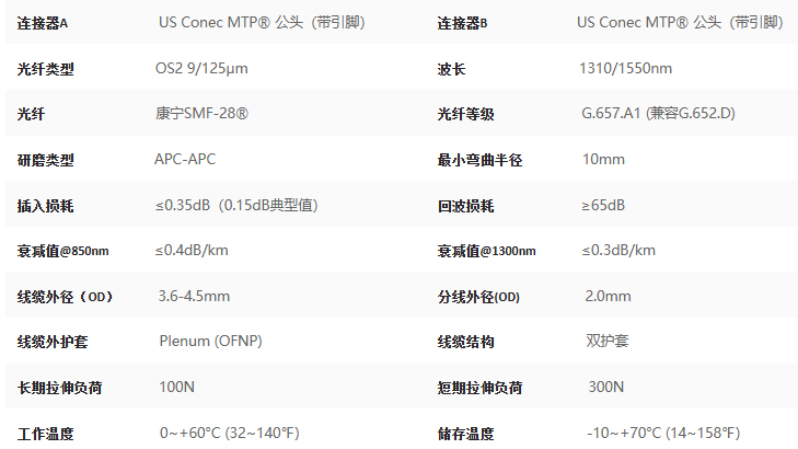 30m OS2 8芯雙護套單模主干跳線