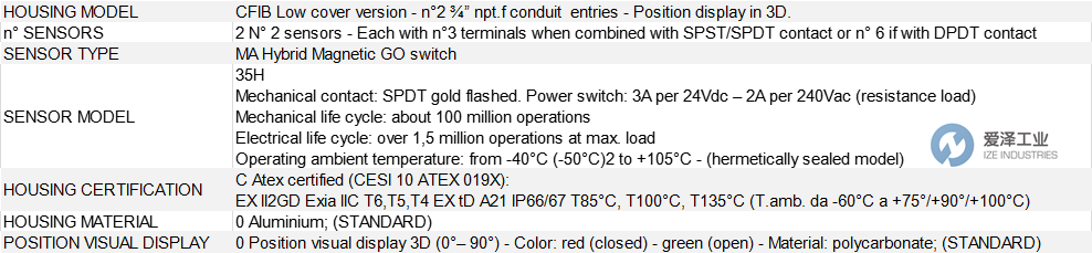 CECOGEN限位開(kāi)關(guān)盒CFIB-2-MA-35H-C-0-0技術(shù)參數(shù)及介紹