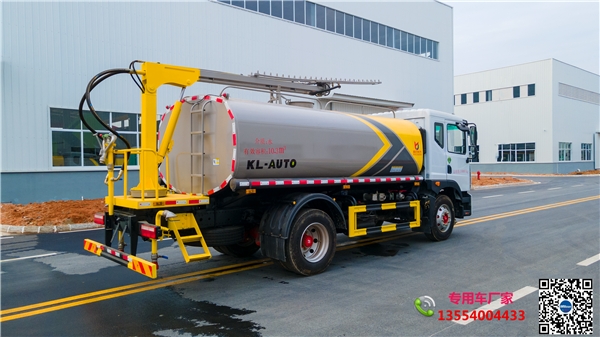專用部分配專用灑水泵,帶前沖、后灑、側(cè)噴、后工作平臺及灑水高壓炮。配消防接口、自流閥,2根與罐體等長輸水管,水位計,1個爬梯,兩側(cè)及后杠。高溫日間噴灑降溫水霧,使地表溫度下降4-6℃,延緩瀝青軟化變形