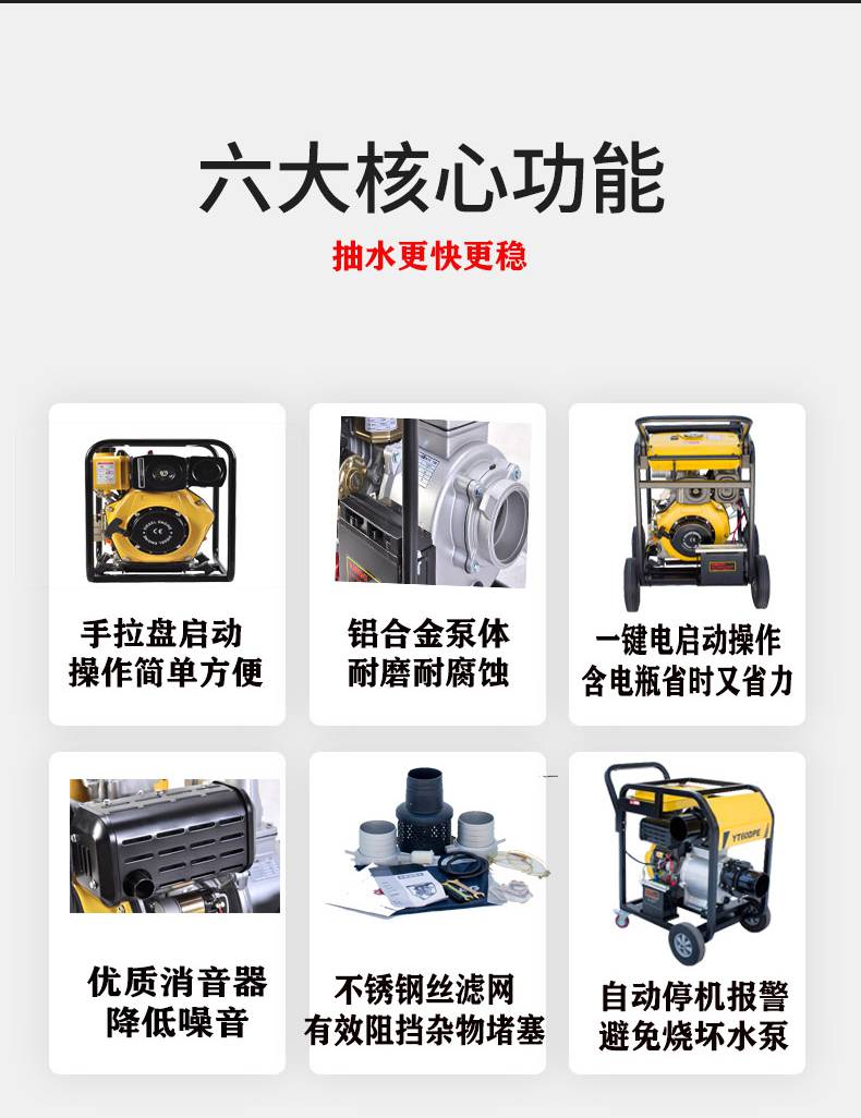 6 8寸柴油機抽水泵 移動式防汛應(yīng)急排澇泵 伊藤動力YT80DPE/YT60DPE 泵軸位置 | 邊立式 | ||