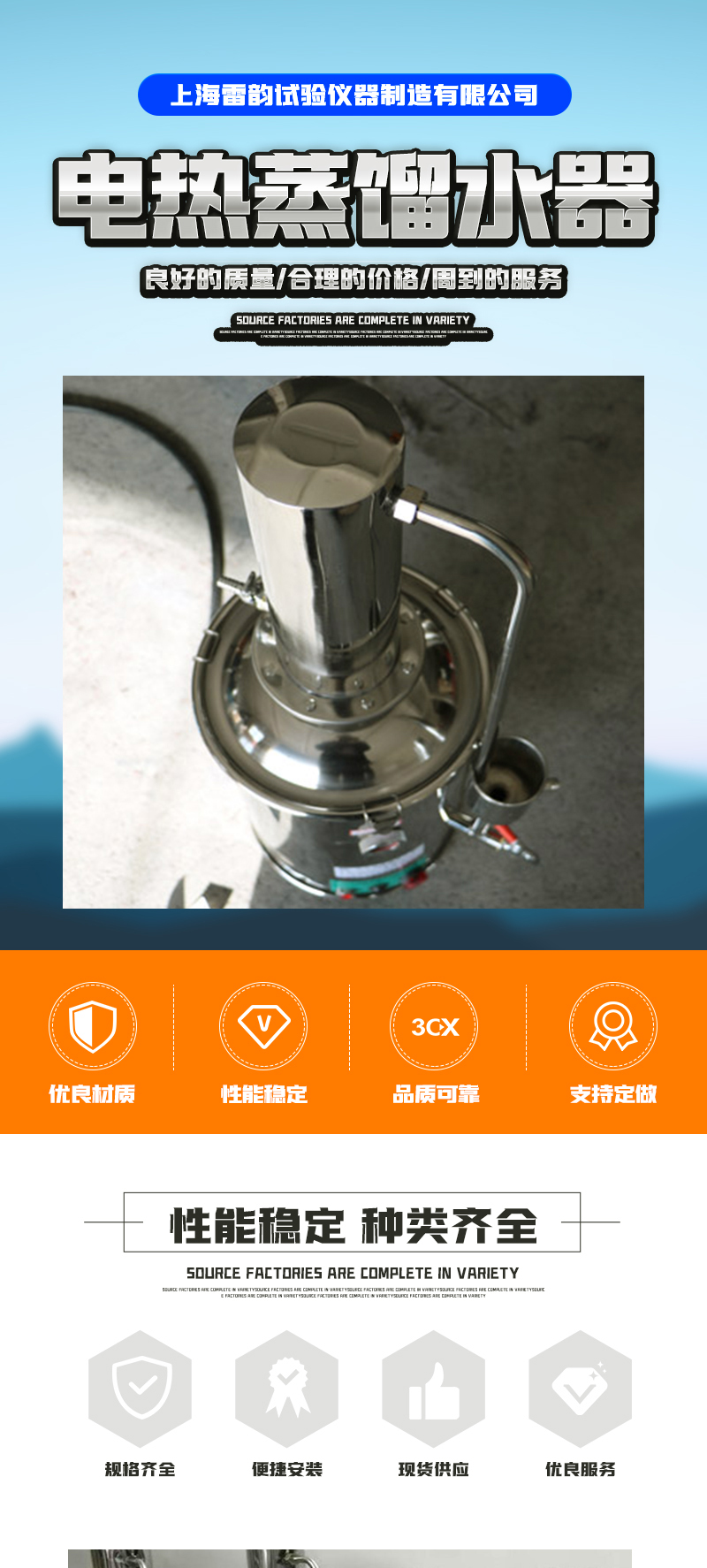 雷妍YA-ZD-5電熱重蒸餾水器盤(pán)管式冷凝結(jié)構(gòu)設(shè)計(jì)全國(guó)供應(yīng)物流配送