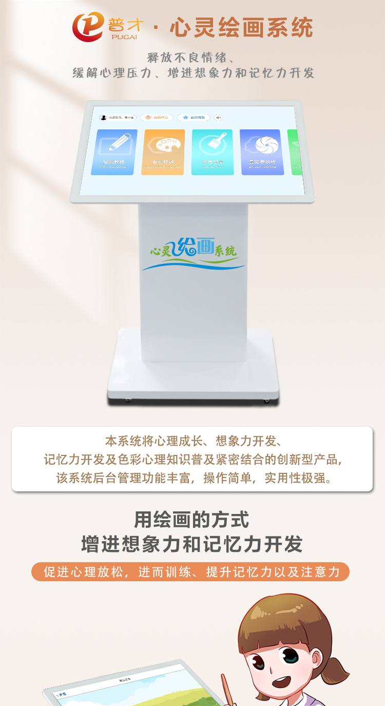 普才心靈繪畫系統(tǒng)曼陀羅療法心理涂鴉色彩脫敏記憶拼圖32寸一體機(jī)