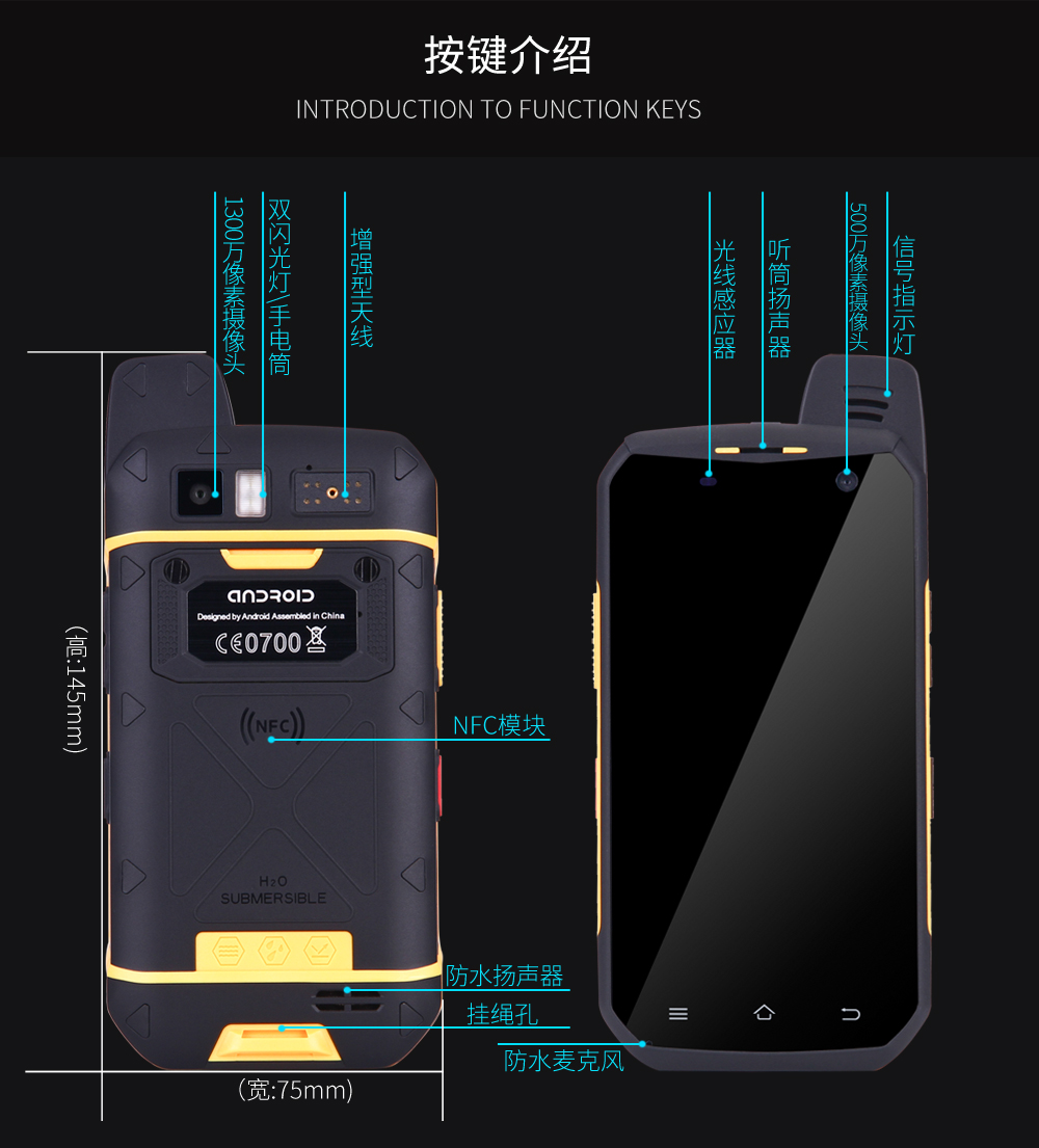 5寸三防手機POC公網(wǎng)對講終端ptt集群一鍵對講調(diào)度終端智能手持機