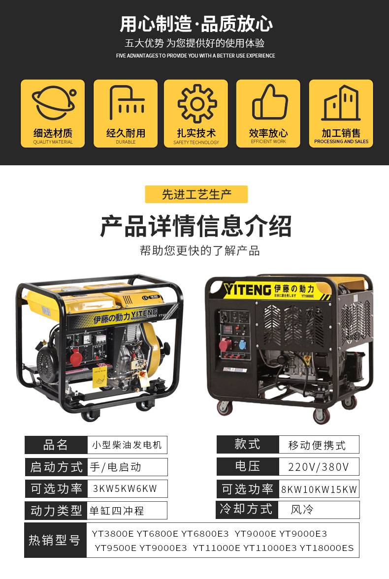 伊藤動力8KW5KW3KW柴油發(fā)電機YT6800E3 移動便攜式單三相手/電啟動 是否支持加工定制 | 是 | ||