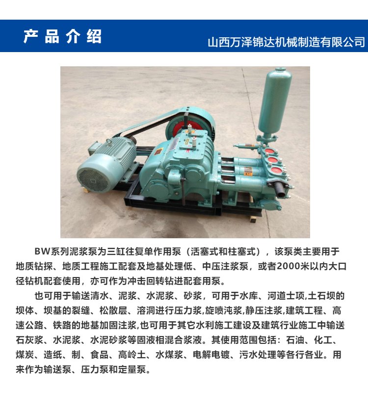 用途 | 鉆機(jī)配套、清水、泥漿、水泥漿輸送 | ||
