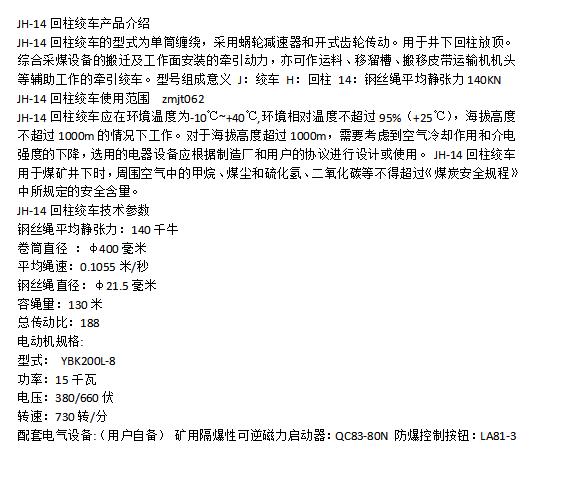 JH-14回柱絞車用于井下放頂可作運(yùn)料移溜槽搬移作用大