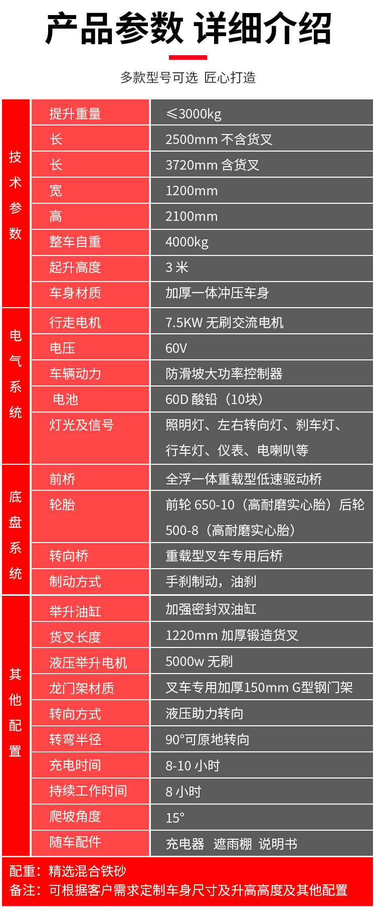 規(guī)格3噸電動(dòng)叉車