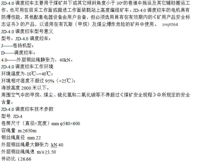 產(chǎn)品類型 | JD-4.0調(diào)度絞車 | ||