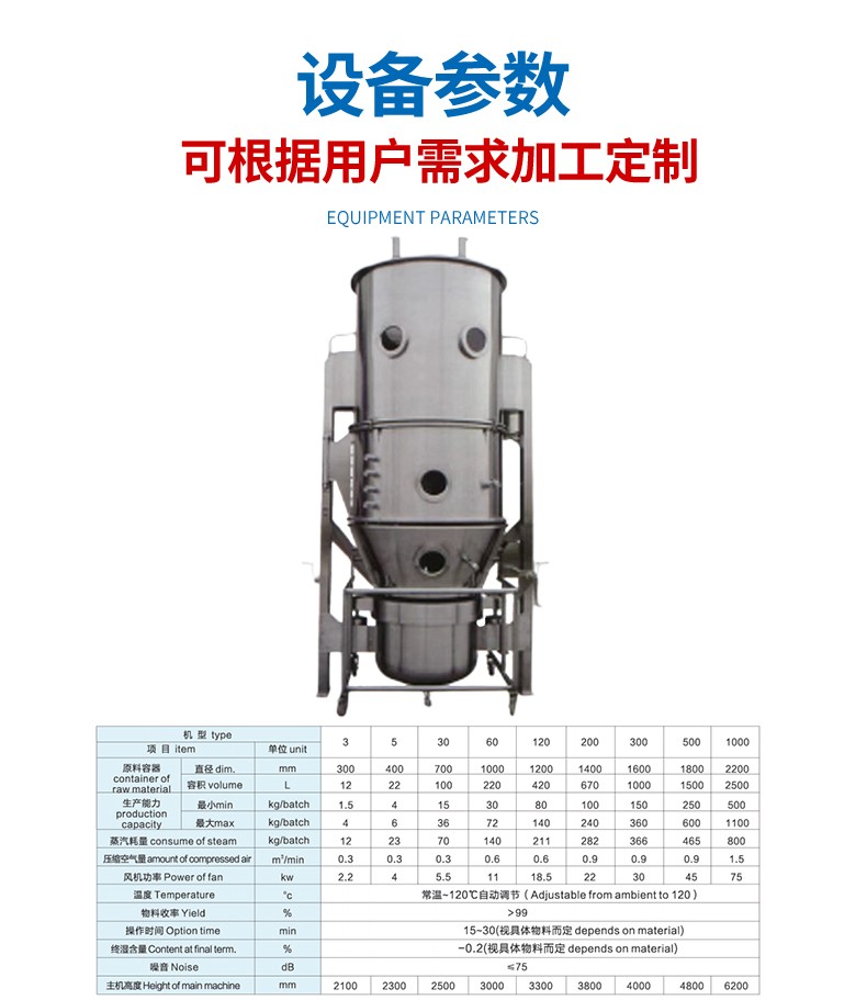 產(chǎn)品名稱 | 沸騰(一步)制粒干燥機(jī) | ||