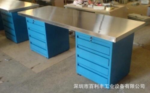 工作桌:1、組裝簡(jiǎn)便,強(qiáng)度高,可使工作臺(tái)承受額定重量。 2、多種桌面材質(zhì)供選擇,可適用于不同的工作環(huán)境以滿足客戶的要求。 3、重型工作臺(tái)桌腳上預(yù)留電源孔,方便用戶安裝電源插座。 4、加裝工具柜后,更能合理的使用空間,存放工具及零配件。 5、選擇合適的桌面可直接在工作臺(tái)上加裝臺(tái)鉗,適合鉗工工作。6、工作臺(tái)可以加裝掛板、電器板、燈頂板、棚板等桌上部件,以滿足各種工作的要求。 7、重型工作臺(tái)額定承重1000kg,中、輕型工作臺(tái)額定承重200-800kg。