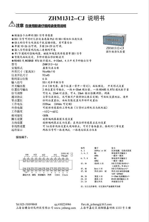 SSI信號(hào)轉(zhuǎn)換模塊 SSI信號(hào)轉(zhuǎn)換4-20ma信號(hào)、RS485、modbus rtu信號(hào)輸