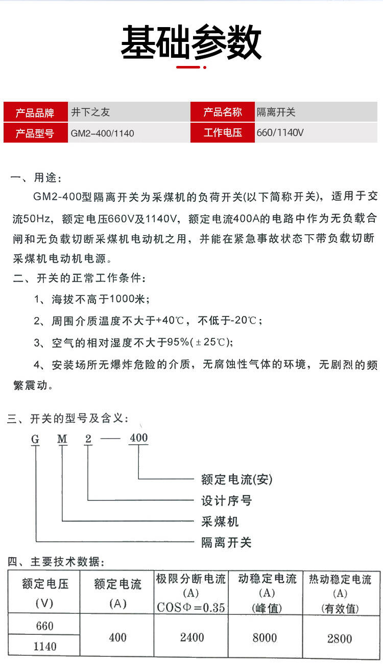 煤礦采煤機(jī)用負(fù)荷開關(guān) GM3-250/1140 礦用隔離開關(guān)