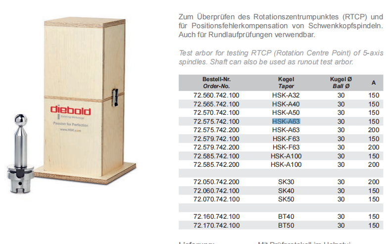 德國Diebold戴博 BT50球頭檢棒 五軸機(jī)床檢測棒 主軸跳動檢測