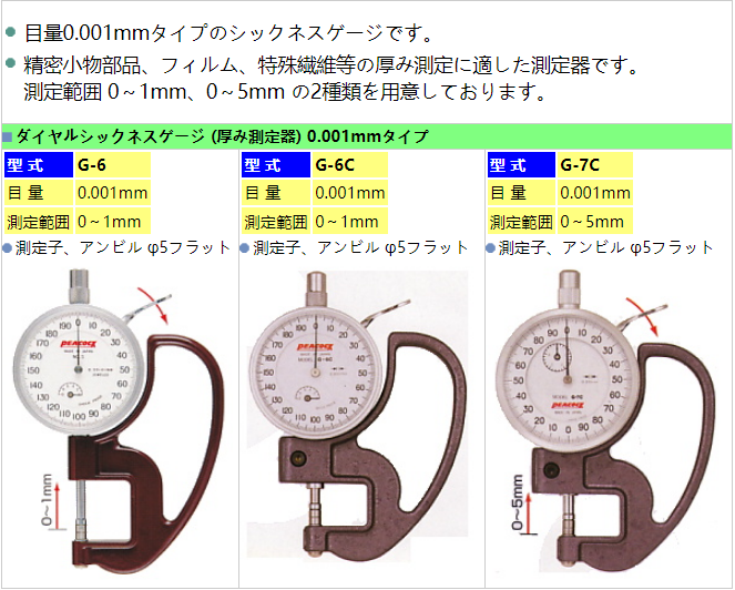 日本PEACOCK孔雀 0.001mm千分型針盤式厚度計(jì) 測(cè)厚儀G-6原裝