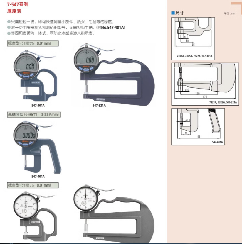 Mitutoyo日本 三豐數(shù)顯厚度表 547-401A 數(shù)顯測厚規(guī) 厚度計(jì)0.001mm