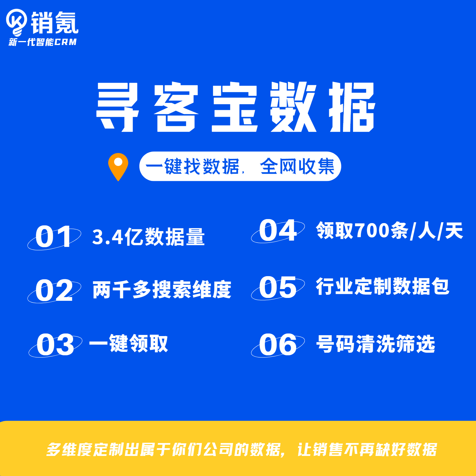 包含3.4億+企業(yè)線索數(shù)據(jù),提供2000+數(shù)據(jù)維度,滿足企業(yè)各種信息搜索需求。銷售可根據(jù)目標客戶畫像,通過尋客寶進行定向搜索、多標簽組合篩選搜索,快速批量獲取目標客戶企業(yè)老板、關鍵kp的聯(lián)系方式,有效提升銷售獲客效率與精準度。
