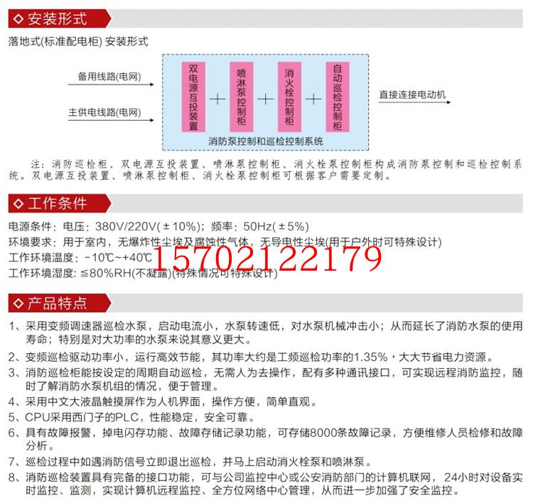 8、消防巡檢設(shè)備自動(dòng)巡檢裝置控制功能:完成對(duì)消防泵、噴淋泵的低頻和噴霧泵低速自運(yùn)巡檢控制,巡檢周期24小時(shí)
