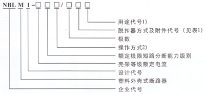 1)配電用斷路器無代號;保護電動機用斷路器以2表示