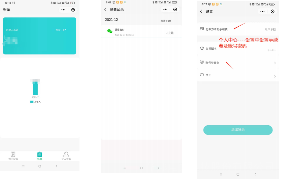 3.2.4. 進(jìn)入“個(gè)人中心”界面,可修改賬戶密碼、微信取現(xiàn)手續(xù)費(fèi)、也可切換到客戶端。