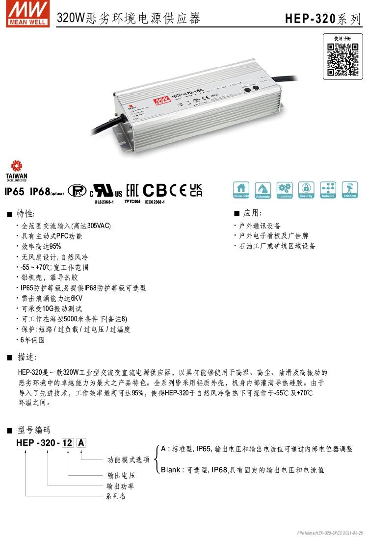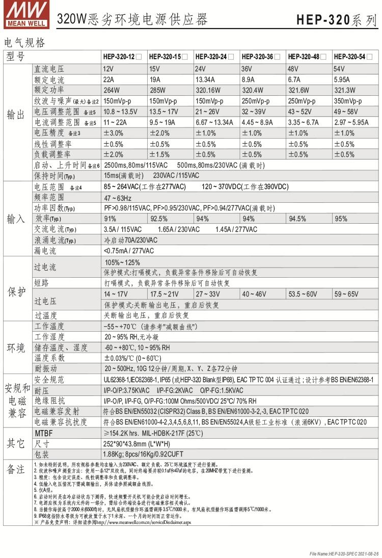 明緯HEP-320-54 320W惡劣環(huán)境電源供應(yīng)器