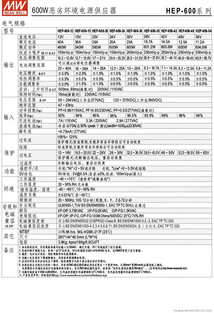 明緯HEP-600-20 600W惡劣環(huán)境電源供應器