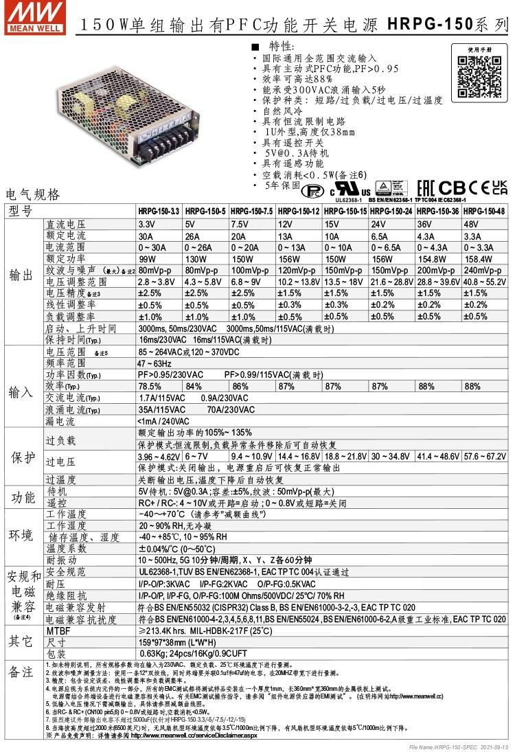 HRPG-150-15 150W單組輸出有PFC功能開關(guān)電源