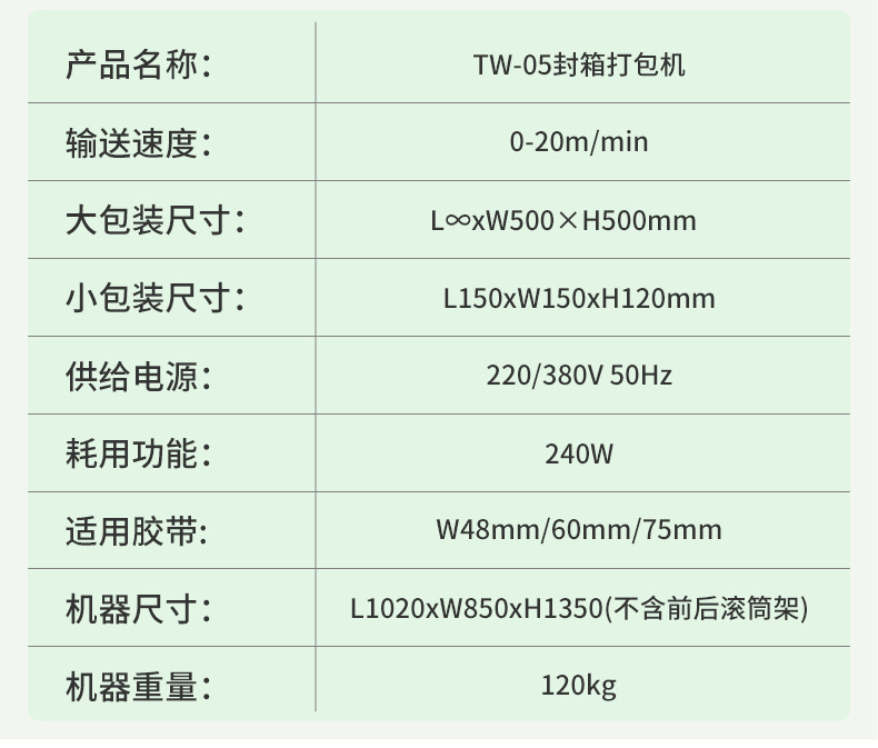 主要產(chǎn)品有:自動(dòng)打包機(jī)、PET塑鋼帶打包機(jī)、免扣鋼帶打包機(jī)、氣動(dòng)鋼帶打包機(jī)、熱收縮包裝機(jī)、封口機(jī)、自動(dòng)封箱機(jī)、氣動(dòng)釘箱機(jī)、貼體包裝機(jī)、吸塑包裝封口機(jī)、打碼機(jī)、手持式噴碼機(jī)、真空包裝機(jī)、外抽式真空機(jī)、熱熔膠機(jī)、高周波塑料熔接機(jī)、拉伸膜纏繞機(jī)、托盤裹包機(jī)、金屬電化打標(biāo)機(jī)、電腐蝕標(biāo)記機(jī)、折紙機(jī)、鋼帶剪刀、自動(dòng)化流水線、輸送機(jī)、皮帶生產(chǎn)線、印字打包帶、PET塑鋼打包帶、印字封口膠、PE拉伸膜、熱收縮膜、PE保護(hù)膜、熱熔膠及包裝機(jī)械配件。