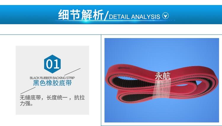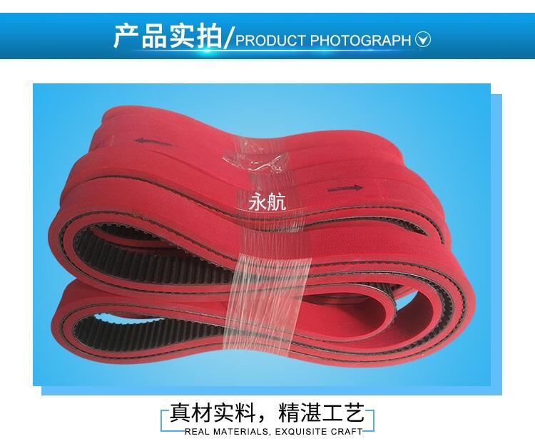 采用一體硫化成型,抗拉力強(qiáng),超耐磨不打滑!傳動(dòng)平穩(wěn),不偏位,不掉粉,壽命長(zhǎng)等優(yōu)點(diǎn),使用壽命比普通帶子壽命高1.5倍。質(zhì)量可直接代替進(jìn)口帶子,規(guī)格品種齊全,并可來(lái)圖來(lái)樣加工定制