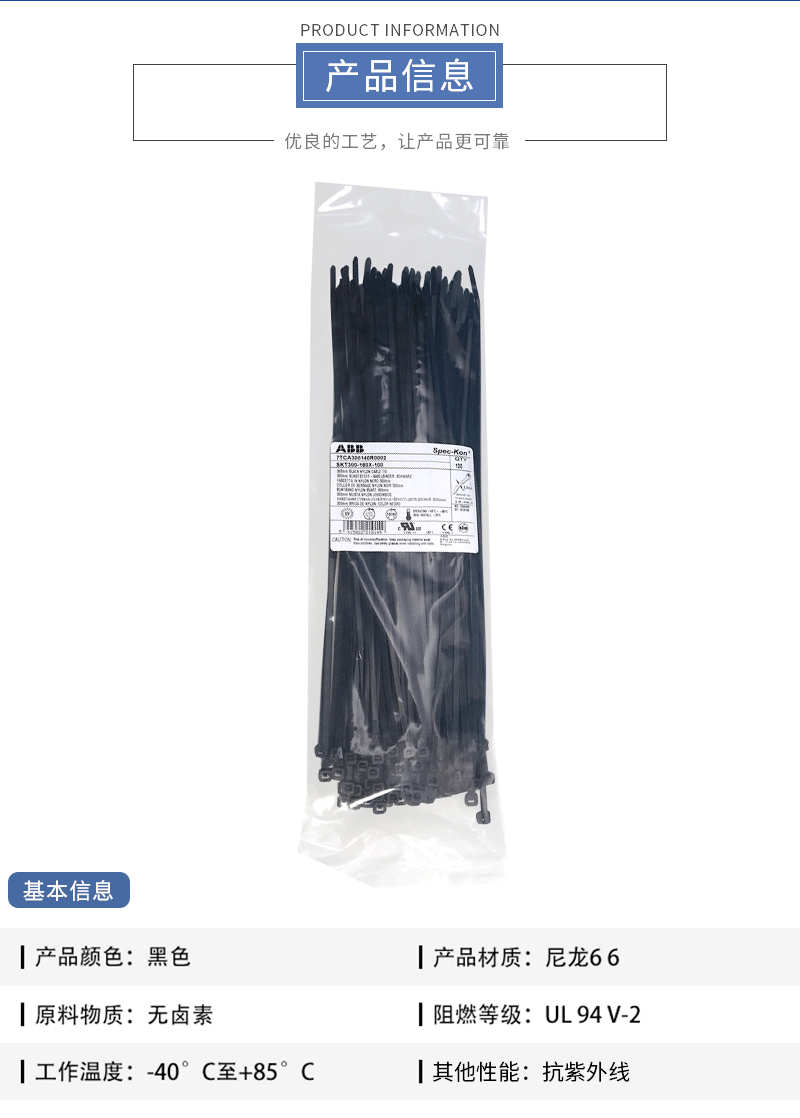 ABB進(jìn)口尼龍黑色扎帶抗紫外線耐候白色扎帶耐低溫高承重