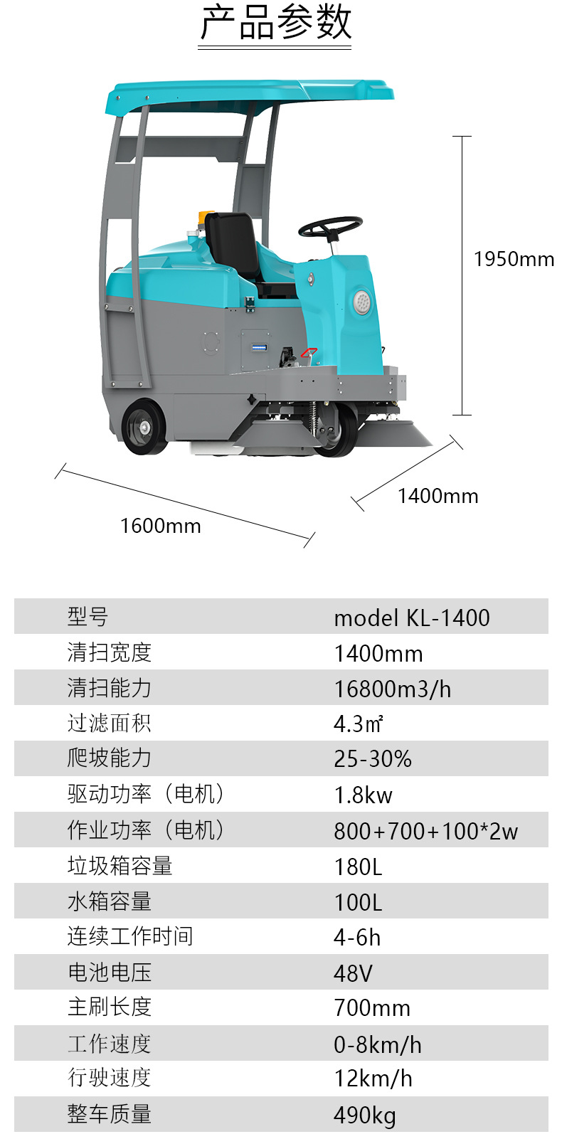 清掃方式 | 駕駛式清掃 | 清掃寬度 | 1400 |