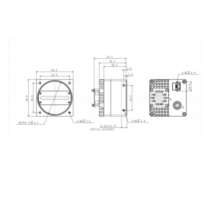 產(chǎn)品尺寸 80mm×80mm×48.2mm(不含鏡頭座和后殼接口)