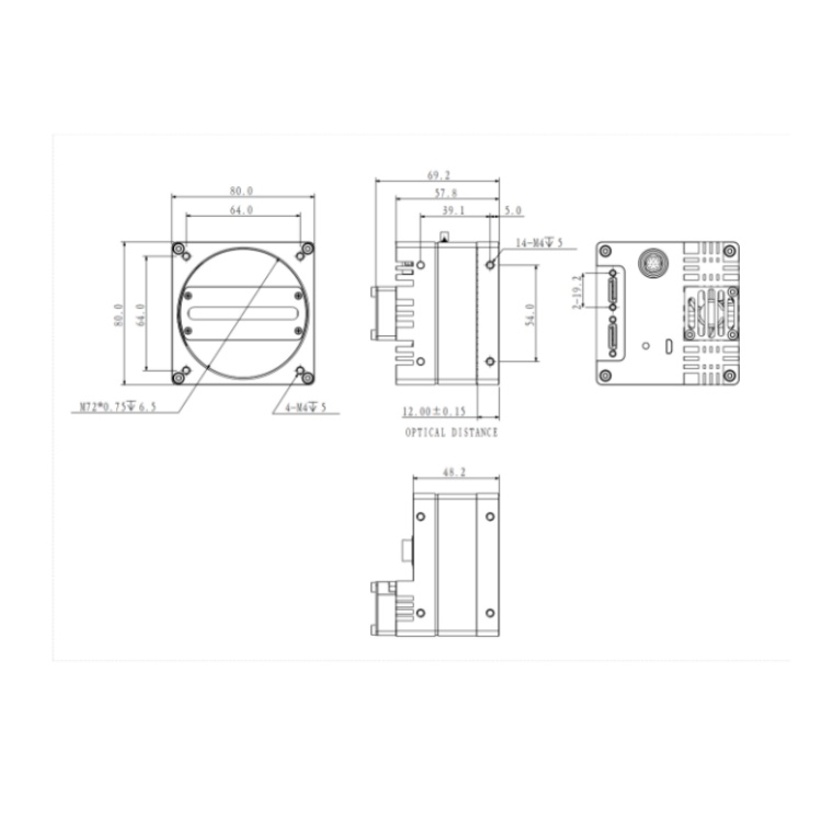 L5087MKA70 華??萍糒系列8K高清全局快門行頻100kHz黑白CameraLink接口工業(yè)線陣相機 結(jié)構(gòu)尺寸圖(mm):