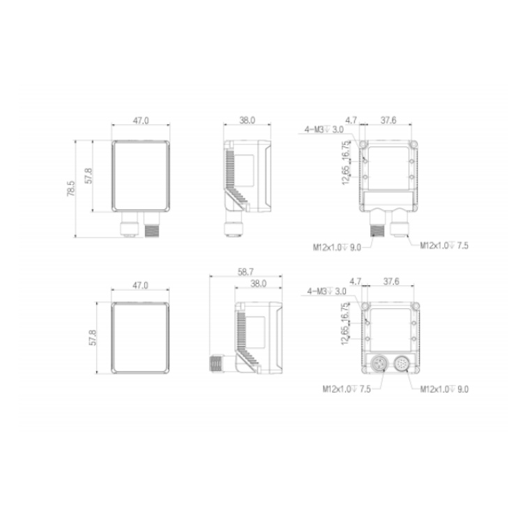 RD13G-07MBG1 華睿科技R4000系列130萬像素7mm鏡頭全局快門60fps百兆以太網(wǎng)接口藍光智能讀碼器 結(jié)構(gòu)尺寸圖(mm):
