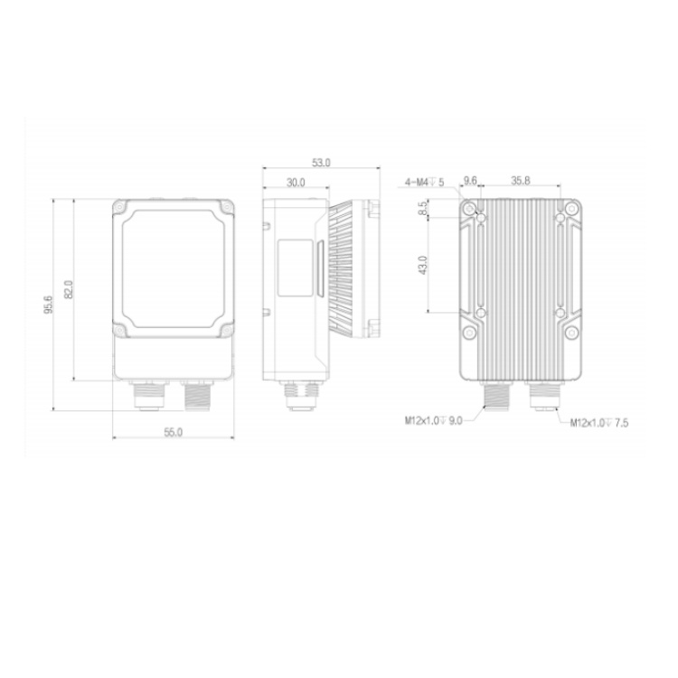 RE50G-16MBG1 華??萍糝5000系列500萬像素16mm鏡頭全局快門45fps千兆工業(yè)以太網(wǎng)接口深度學(xué)習(xí)算法藍(lán)光智能讀碼器 結(jié)構(gòu)尺寸圖(mm):
