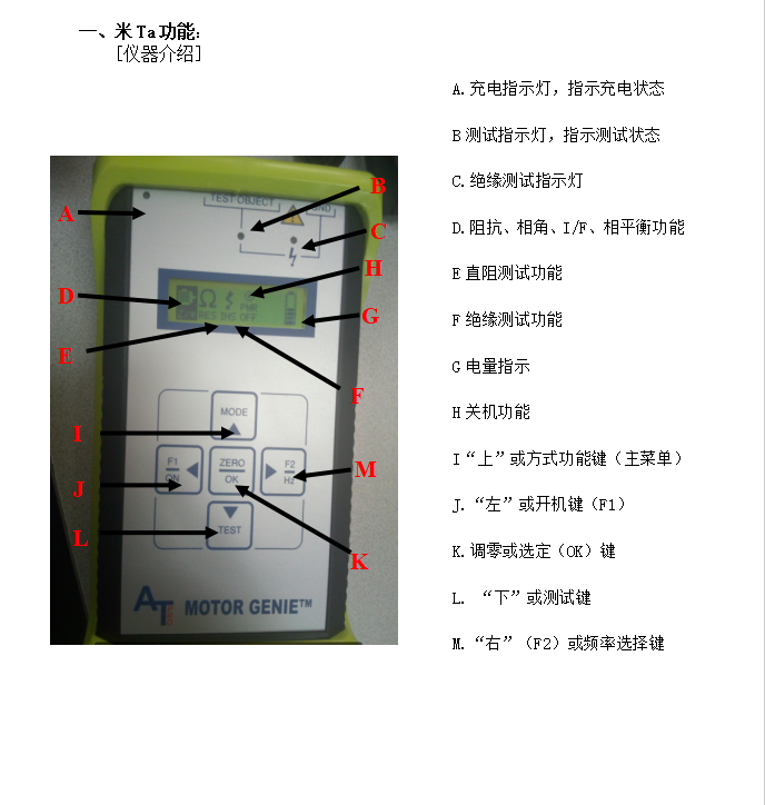 1.米Ta為離線測試儀,測試時(shí)電機(jī)不可帶電。