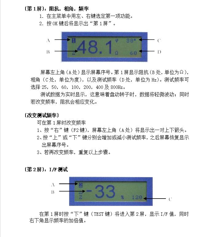 注意:也可利用I/F(第2屏)與百分比偏差(第3屏)進(jìn)行比較。