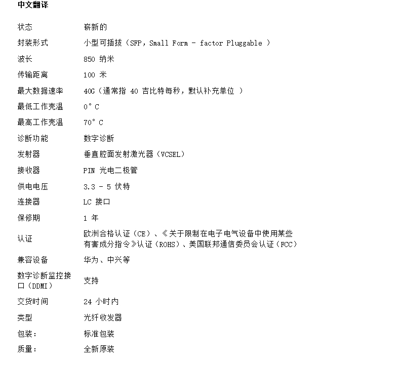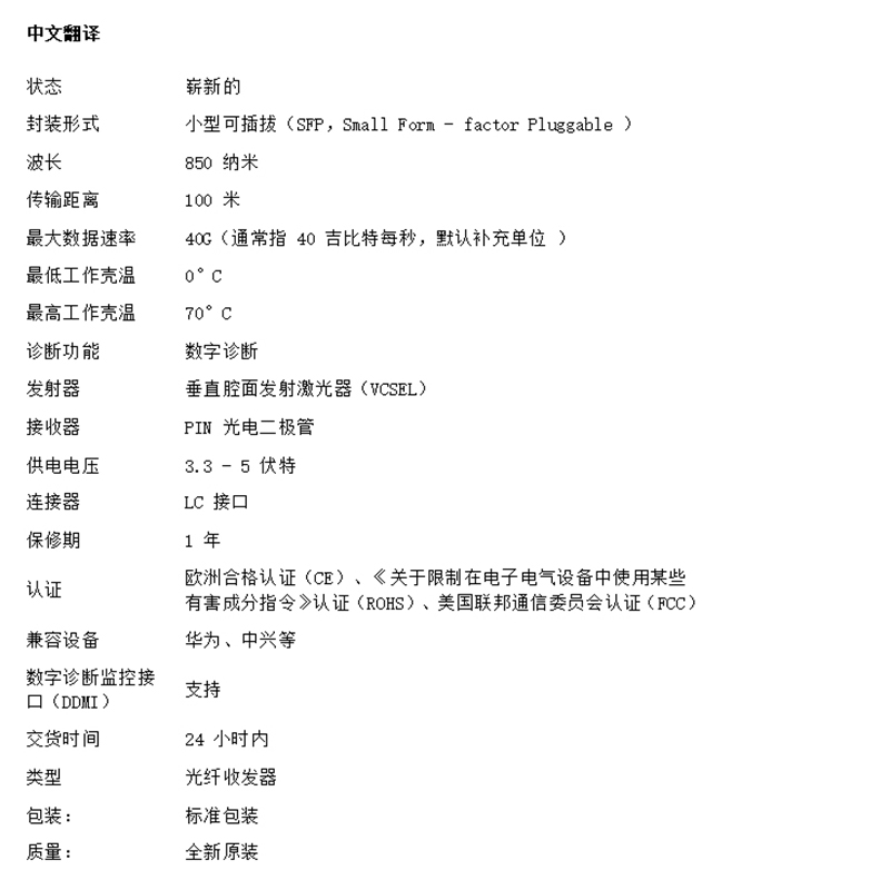 Finisar FTL410QE4C多模光模塊